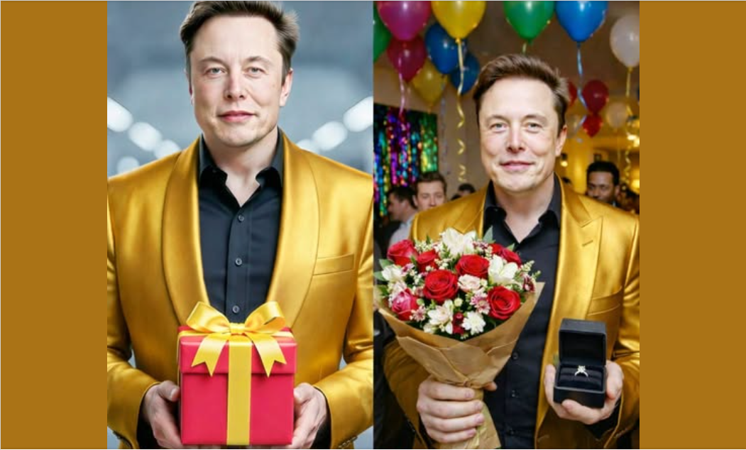 Late into the evening, under strings of balloons and soft golden light, Elon Musk stepped forward holding not a speech, not a microphone, but a bouquet of flowers and a small black box. Around him stood close friends and family, gathered for what many believed was simply an intimate party. Then the room fell completely still.